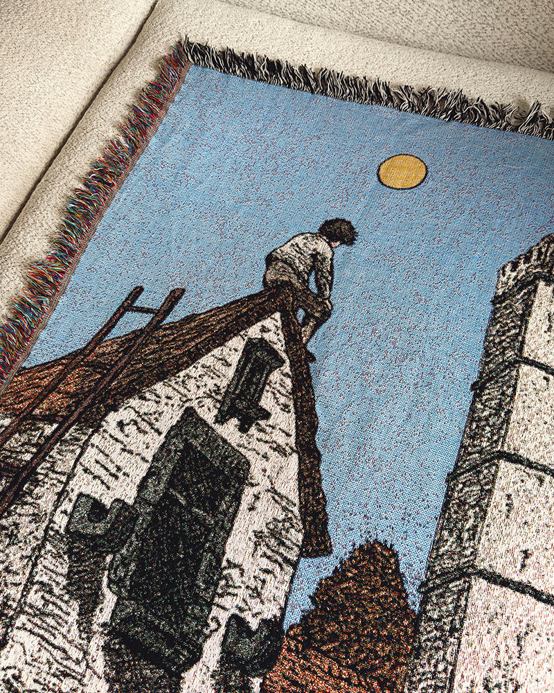Woven Throw Blanket - “Above Perugian Rooftops” (The Fool/The Moon) - 37 x 52 inches
